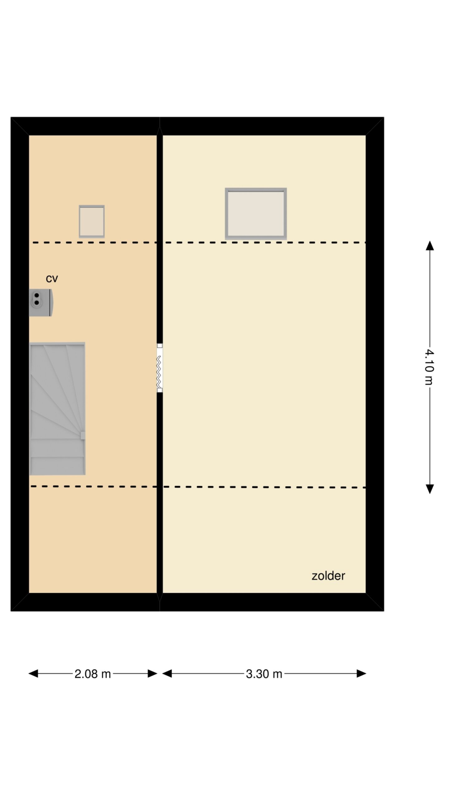 De voorzolder is via een vaste trap te bereiken en beschikt over een CV-ketel (bouwjaar 1994) en geeft toegang tot een bergvliering.