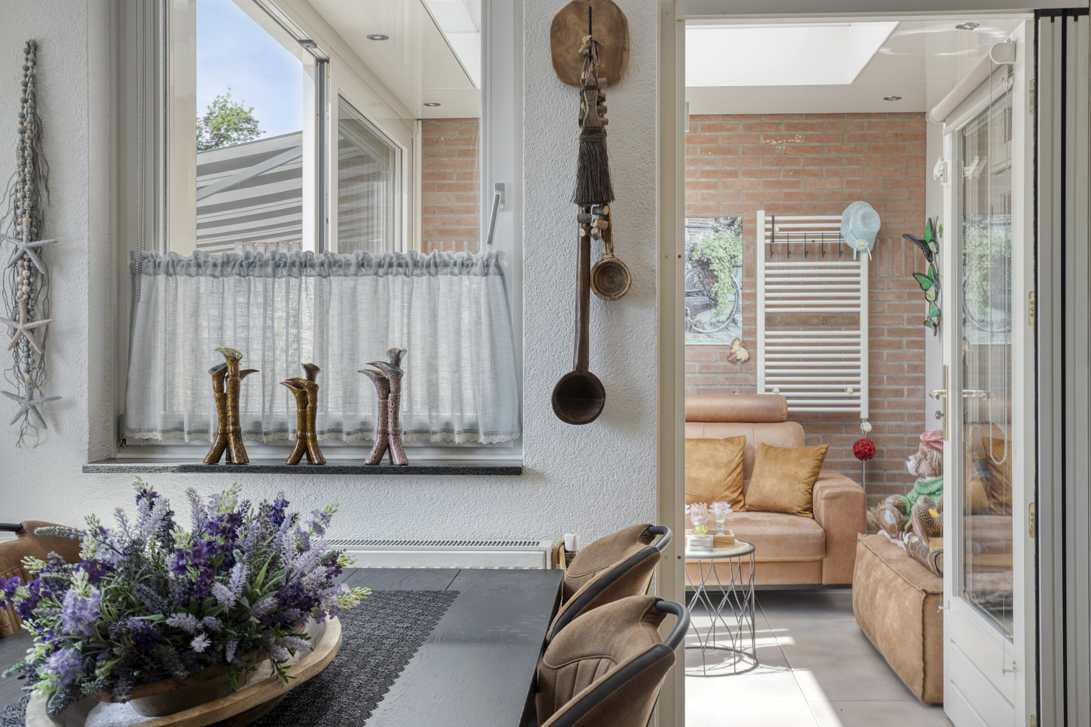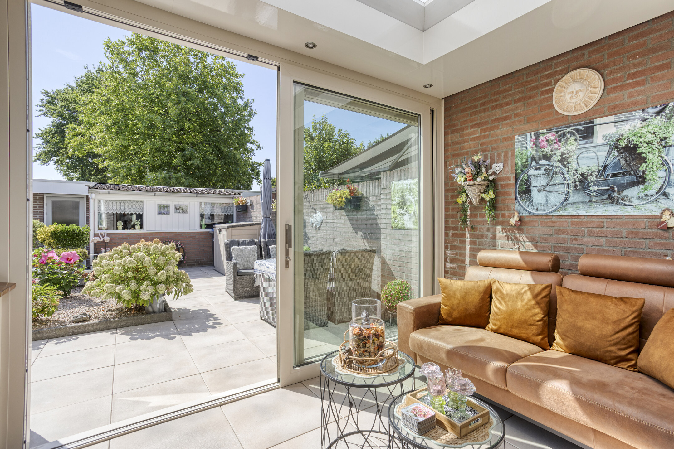 Direct aan de woning is een serre gerealiseerd welke is uitgerust met een schuifpui, verwarming, lichtkoepel en inbouwspot. Deze ruimte is het gehele jaar door te gebruiken en heeft een fijne uitkijk op de achtertuin.