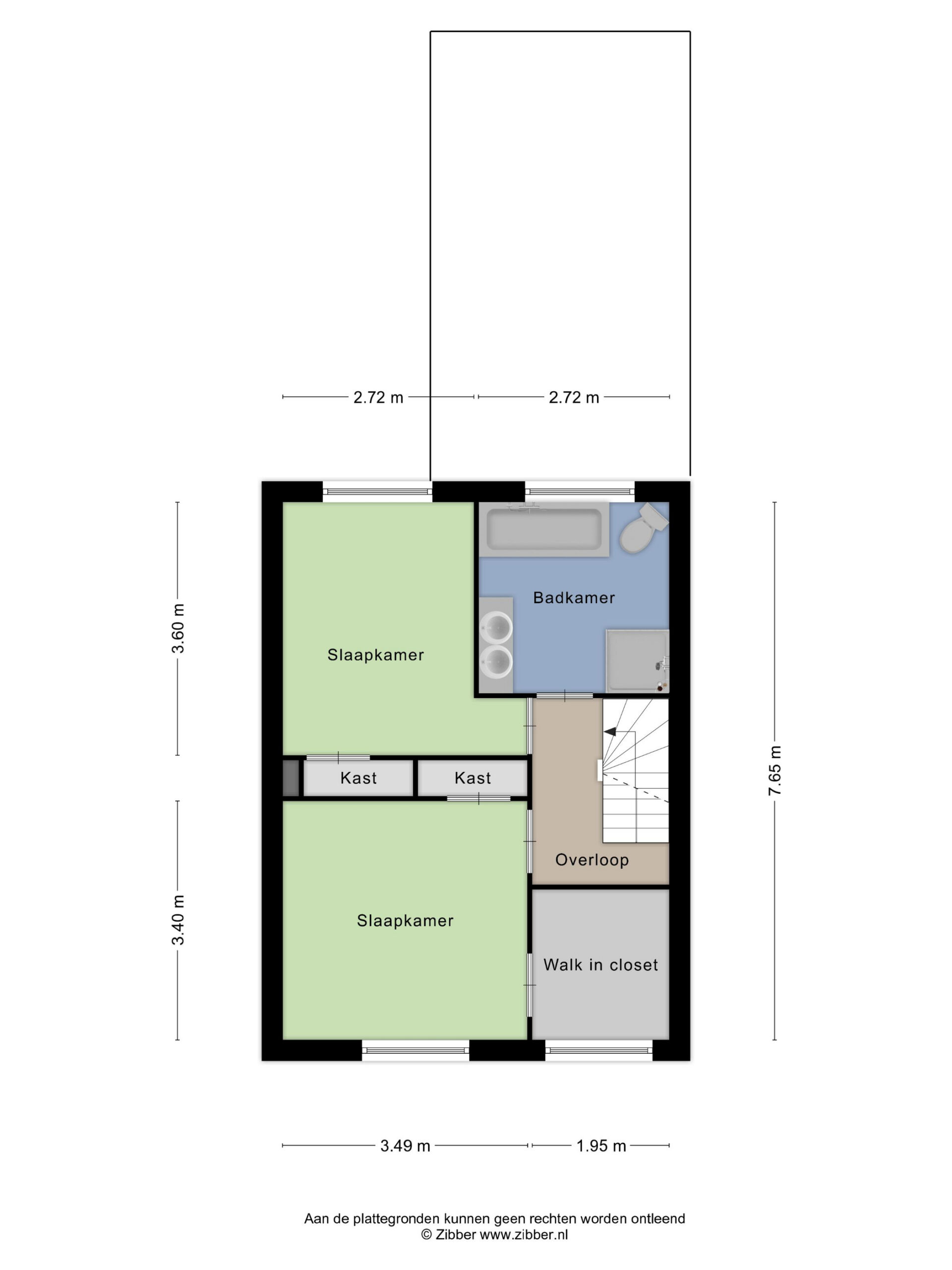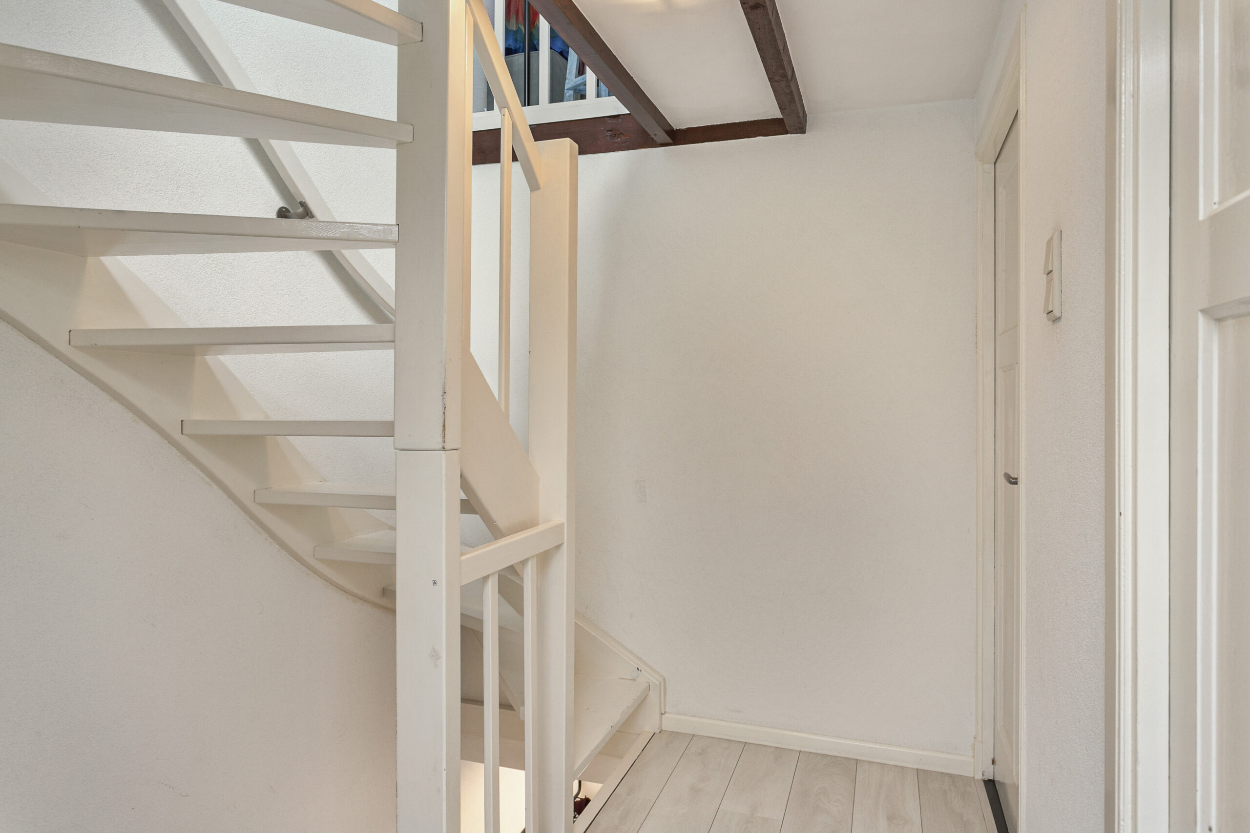 Vanuit de overloop zijn twee slaapkamers, badkamer en trapopgang naar de tweede verdieping te bereiken.