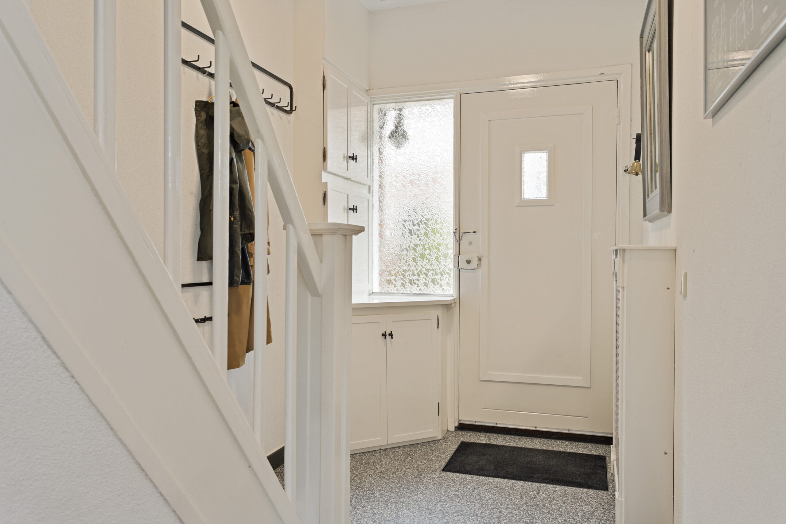 Via de overdekte entree te bereiken hal met meterkast en toegang tot trapopgang en woonkamer.